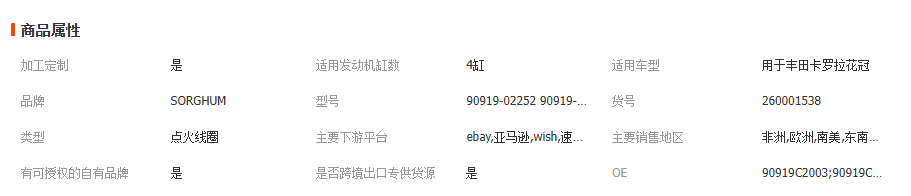 90919-02252 90919-02258适用于丰田卡罗拉花冠汽车高压包点火线