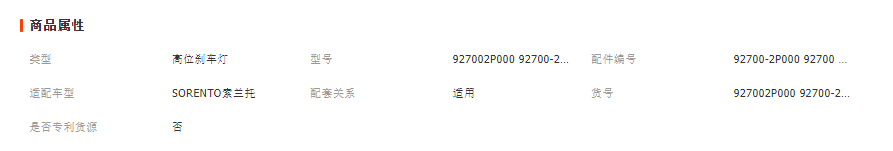 适用于起亚927002P000高位制动灯总成SORENTO后高位刹车灯索兰托