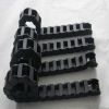 汇科塑料穿线拖链类型: 有7*7,10*10,10*15,15*15,15*20,15*35,15*40,15*40,15*50,18*18,18*25,18*35,18*50,18*60,25*25,25*38,25*57,25*77,25*103,35*50,35*60,35*75,35*100,35*125,35*150,35*175,35*200,45*50,45*60,45*75,45*100,45*125,45*150,45*200,56*95,56*125,56*175,56*200,56*300还有55,62,65,80系列等拖链。 汇科塑料穿线拖链的设备: 运用恰当的平头螺丝刀,笔直刺进盖板两端的敞开孔,翻开盖板,将电缆、油管等依照咱们供给的放置准则放入拖链,然后盖上盖板,此外,电线的固定端和活动端均应去张力设备加以固定。在长距离滑动运用时,主张运用导向槽。导向槽的运用和设备请征询公司专业人员。 汇科塑料拖链内部高度从10-80(mm)不等,宽度从10-350(mm)不等,根据您想要保护的线缆 的尺寸和线缆 的数量来确 定。拖 ?链的使用强度主要和原料中所含的尼龙含量有关系。所以塑料拖链又分为普通型工程塑料拖链和增强型工程塑料拖链。? ?电缆拖链越来越受到用户的欢迎,有了它可以减少外办环境对电缆的损坏,不但减少了成本,而且也给生产带来巨大的动力。 为保证电缆拖链正常工作,避免对电缆造成损害,需要正确的进行安装操作。 ? ? 对于电缆必须留出不小于10%的余量,对于水管必须留出不小于20%的余量。2.避免将不同外套的电缆留在一起,以减少磨损。3.如需将数根电缆放置于一条拖链中,尽可能将他们用隔板隔开,如果不能,则需确保内部空间不允许电缆交叠,4.根据各条电缆的重量和尺寸对称摆放,把重的和大的电缆放在两侧,把轻的和小的电缆放在中间。