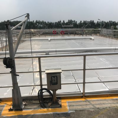 在以上三导杆组成的系统中,由于三导杆横截面很小,对污水的流动阻力非常小,从而实现工艺的正常运行。