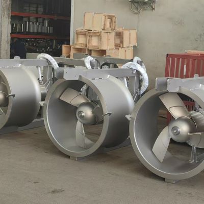 螺旋桨叶轮能够处理常规污水。螺旋桨叶轮在结构设计上是水力平衡的无缠绕和自清洁形式。螺旋桨叶轮精心地进行加工和表面处理,能高效率传递电机输出功率。叶轮有三叶片。所有叶片都是相同的形式,间隔距离均匀的。叶片与轮觳使用不锈钢AISI316或SU304。螺旋桨叶轮采用单键栓固定在轴的端部,采用保护帽进行密封,并使用锁定垫圈系统。螺旋桨叶轮经动平衡检验合格。