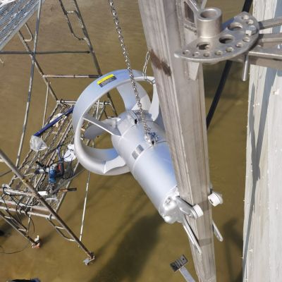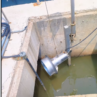 (3)潜水搅拌机水平安装以确保水在流动过程中固、液均匀分布,并防止固体沉淀。