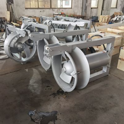 (1)回流泵主机主要由叶轮、潜水电机、导流筒体、导向滑轮等组成。叶轮直接装在潜水电机轴上,潜水电机则固定在导流筒体内。
