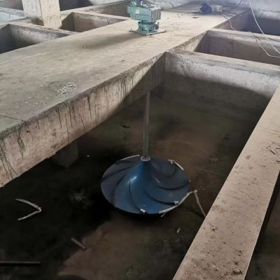 杜安环保立式涡轮搅拌器由电机、减速机、玻璃钢叶轮、机架、传动轴和就地控制箱等组成。