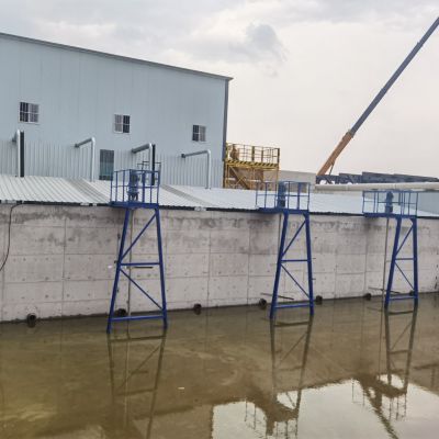 潜水搅拌机,安装于污水处理厂的A池(共2座,单座尺寸45m×6m×5.5m)及污泥池(共1座,单座尺寸5.3m×2.2m×5.5m)中,其中A池2套、污泥池1套。