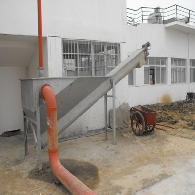 U型螺旋输送槽采用不锈钢材料折成,内设耐磨衬里设置成半圆状,其圆弧设置成与无轴螺旋体半径相吻合以减少过量间隙来提高输送效果;耐磨衬里采用耐磨性能高的耐磨尼龙材料制作,便于安装及更换。