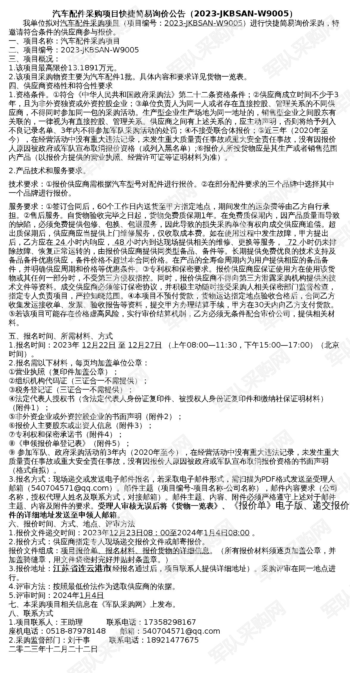 汽车配件招标