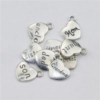 Diy合金饰品配件 桃心 刻字 Mom Dad Sister 家庭心形英文吊坠 合金饰品 金色字母 双面字母吊坠 10MM 26个字母 多色批发 光面好