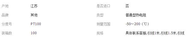 本网页所展示的有关【WZP-200 pt100铂热电阻 防水防油温度传感器K/E 型热电偶温度探头_其他传感器_兴化市步成电热电器厂】的信息/图片/参数等由全球零部件网的会员【兴化市步成电热电器厂】提供,由全球零部件网会员【兴化市步成电热电器厂】自行对信息/图片/参数等的真实性、准确性和合法性负责,本平台(本网站)仅提供展示服务,请谨慎交易,因交易而产生的法律关系及法律纠纷由您自行协商解决,本平台(本网站)对此不承担任何责任。您在本网页可以浏览【WZP-200 pt100铂热电阻 防水防油温度传感器K/E 型热电偶温度探头_其他传感器_兴化市步成电热电器厂】有关的信息/图片/价格等及提供【WZP-200 pt100铂热电阻 防水防油温度传感器K/E 型热电偶温度探头_其他传感器_兴化市步成电热电器厂】的商家公司简介、江南(中国)等信息。