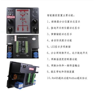 开关柜智能操控装置功能强大,用于3-35kv户内开关柜,适用于中置柜、手车柜、固定柜、环网柜等多种开关柜。可取代现有的一次回路模拟、带电显示器、自动加热除湿控制器、断路器分合闸按钮等元件,具备了断路器分合闸状态指示、储能指示、接地开关指示、手车位置指示、智能语音防误指示、高压带电显示、温湿度自动控制(显示当前温湿度值)等功能及RS485通信接口等多项功能。