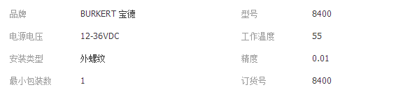 传感器 8400 温度变送器/开关控制器 带显示器·同时具有显示、兼控、变送和开关控制功能·大屏幕显示器·菜单引导参数设置·由外部设定值、过程值或Asi接口提供完整的通讯功能 8400型可与以下产品配套:S001/S005型接头 6213型电磁阀 1067型连续侧部控制器 2000(8630)型连续顶部控制器 8644型AirLINE带l/O模块阀岛