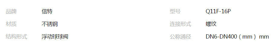 本网页所展示的有关【温州不锈钢手动直通式丝扣两片式球阀Q11F-2.5MPA 信特制造_球阀_上海艾环阀门有限公司】的信息/图片/参数等由全球零部件网的会员【上海艾环阀门有限公司】提供,由全球零部件网会员【上海艾环阀门有限公司】自行对信息/图片/参数等的真实性、准确性和合法性负责,本平台(本网站)仅提供展示服务,请谨慎交易,因交易而产生的法律关系及法律纠纷由您自行协商解决,本平台(本网站)对此不承担任何责任。您在本网页可以浏览【温州不锈钢手动直通式丝扣两片式球阀Q11F-2.5MPA 信特制造_球阀_上海艾环阀门有限公司】有关的信息/图片/价格等及提供【温州不锈钢手动直通式丝扣两片式球阀Q11F-2.5MPA 信特制造_球阀_上海艾环阀门有限公司】的商家公司简介、江南(中国)等信息。