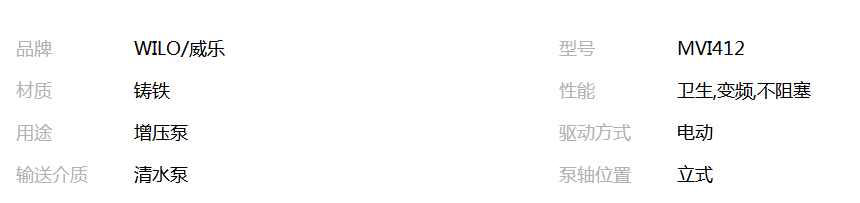 本网页所展示的有关【德国威乐水泵MVI412不锈钢变频泵高扬程泵增压恒压稳压水泵_泵_安徽宏久水泵销售有限公司】的信息/图片/参数等由全球零部件网的会员【安徽宏久水泵销售有限公司】提供,由全球零部件网会员【安徽宏久水泵销售有限公司】自行对信息/图片/参数等的真实性、准确性和合法性负责,本平台(本网站)仅提供展示服务,请谨慎交易,因交易而产生的法律关系及法律纠纷由您自行协商解决,本平台(本网站)对此不承担任何责任。您在本网页可以浏览【德国威乐水泵MVI412不锈钢变频泵高扬程泵增压恒压稳压水泵_泵_安徽宏久水泵销售有限公司】有关的信息/图片/价格等及提供【德国威乐水泵MVI412不锈钢变频泵高扬程泵增压恒压稳压水泵_泵_安徽宏久水泵销售有限公司】的商家公司简介、江南(中国)等信息。