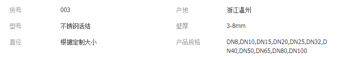 本网页所展示的有关【304内丝螺纹活接头 内螺纹活接头 不锈钢配件内丝螺纹活接头_阀门配件_温州兴源阀门有限公司】的信息/图片/参数等由全球零部件网的会员【温州兴源阀门有限公司】提供,由全球零部件网会员【温州兴源阀门有限公司】自行对信息/图片/参数等的真实性、准确性和合法性负责,本平台(本网站)仅提供展示服务,请谨慎交易,因交易而产生的法律关系及法律纠纷由您自行协商解决,本平台(本网站)对此不承担任何责任。您在本网页可以浏览【304内丝螺纹活接头 内螺纹活接头 不锈钢配件内丝螺纹活接头_阀门配件_温州兴源阀门有限公司】有关的信息/图片/价格等及提供【304内丝螺纹活接头 内螺纹活接头 不锈钢配件内丝螺纹活接头_阀门配件_温州兴源阀门有限公司】的商家公司简介、江南(中国)等信息。