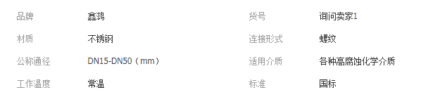 本网页所展示的有关【厂家供应三片式平台球阀DN15-DN50 不锈钢螺纹球阀 气动球阀_球阀_浙江鑫鸿阀门管件有限公司】的信息/图片/参数等由全球零部件网的会员【浙江鑫鸿阀门管件有限公司】提供,由全球零部件网会员【浙江鑫鸿阀门管件有限公司】自行对信息/图片/参数等的真实性、准确性和合法性负责,本平台(本网站)仅提供展示服务,请谨慎交易,因交易而产生的法律关系及法律纠纷由您自行协商解决,本平台(本网站)对此不承担任何责任。您在本网页可以浏览【厂家供应三片式平台球阀DN15-DN50 不锈钢螺纹球阀 气动球阀_球阀_浙江鑫鸿阀门管件有限公司】有关的信息/图片/价格等及提供【厂家供应三片式平台球阀DN15-DN50 不锈钢螺纹球阀 气动球阀_球阀_浙江鑫鸿阀门管件有限公司】的商家公司简介、江南(中国)等信息。