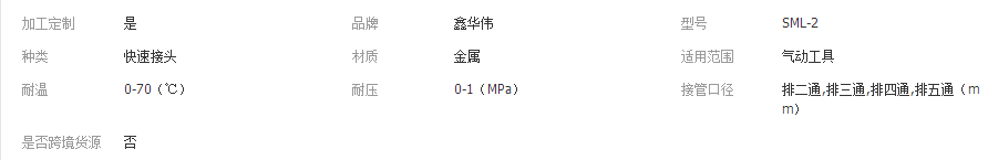 本网页所展示的有关【多管路快速接头 气路排2\3\4\5气路通 SML-2\3\4\5圆二通圆三通_管材及管接头_湖北鑫华伟气动液压机电设备有限公司】的信息/图片/参数等由全球零部件网的会员【湖北鑫华伟气动液压机电设备有限公司】提供,由全球零部件网会员【湖北鑫华伟气动液压机电设备有限公司】自行对信息/图片/参数等的真实性、准确性和合法性负责,本平台(本网站)仅提供展示服务,请谨慎交易,因交易而产生的法律关系及法律纠纷由您自行协商解决,本平台(本网站)对此不承担任何责任。您在本网页可以浏览【多管路快速接头 气路排2\3\4\5气路通 SML-2\3\4\5圆二通圆三通_管材及管接头_湖北鑫华伟气动液压机电设备有限公司】有关的信息/图片/价格等及提供【多管路快速接头 气路排2\3\4\5气路通 SML-2\3\4\5圆二通圆三通_管材及管接头_湖北鑫华伟气动液压机电设备有限公司】的商家公司简介、江南(中国)等信息。