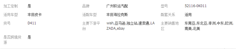 本网页所展示的有关【供应海拉克斯KUN26前保险杠左侧支架 前杠支架52116-0K011_ HVAC汽车_广州积运汽车配件有限公司】的信息/图片/参数等由全球零部件网的会员【广州积运汽车配件有限公司】提供,由全球零部件网会员【广州积运汽车配件有限公司】自行对信息/图片/参数等的真实性、准确性和合法性负责,本平台(本网站)仅提供展示服务,请谨慎交易,因交易而产生的法律关系及法律纠纷由您自行协商解决,本平台(本网站)对此不承担任何责任。您在本网页可以浏览【供应海拉克斯KUN26前保险杠左侧支架 前杠支架52116-0K011_ HVAC汽车_广州积运汽车配件有限公司】有关的信息/图片/价格等及提供【供应海拉克斯KUN26前保险杠左侧支架 前杠支架52116-0K011_ HVAC汽车_广州积运汽车配件有限公司】的商家公司简介、江南(中国)等信息。