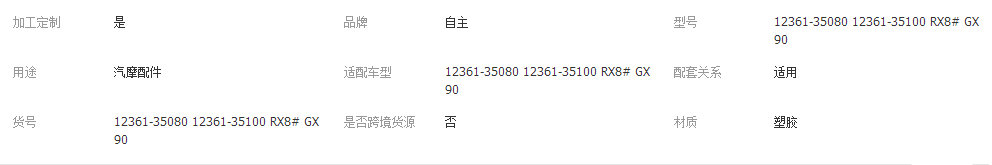 本网页所展示的有关【ENGINE MOUNTING12361-35080 汽摩配件发动机脚胶厂家直销_ HVAC汽车_广州跃憨行汽车配件有限公司】的信息/图片/参数等由全球零部件网的会员【广州跃憨行汽车配件有限公司】提供,由全球零部件网会员【广州跃憨行汽车配件有限公司】自行对信息/图片/参数等的真实性、准确性和合法性负责,本平台(本网站)仅提供展示服务,请谨慎交易,因交易而产生的法律关系及法律纠纷由您自行协商解决,本平台(本网站)对此不承担任何责任。您在本网页可以浏览【ENGINE MOUNTING12361-35080 汽摩配件发动机脚胶厂家直销_ HVAC汽车_广州跃憨行汽车配件有限公司】有关的信息/图片/价格等及提供【ENGINE MOUNTING12361-35080 汽摩配件发动机脚胶厂家直销_ HVAC汽车_广州跃憨行汽车配件有限公司】的商家公司简介、江南(中国)等信息。