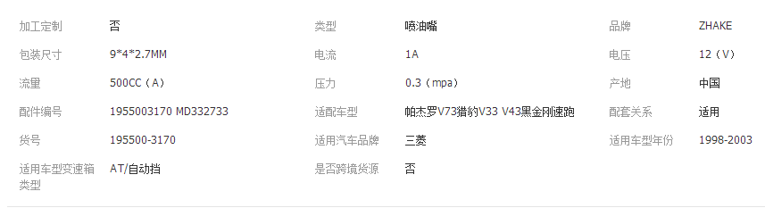 本网页所展示的有关【三菱帕杰罗V73V75猎豹V33黑金刚速跑喷油嘴195500-3170MD332733_挖掘机喷油嘴_广州摩纹尼汽车配件有限公司 】的信息/图片/参数等由全球零部件网的会员【广州摩纹尼汽车配件有限公司 】提供,由全球零部件网会员【广州摩纹尼汽车配件有限公司 】自行对信息/图片/参数等的真实性、准确性和合法性负责,本平台(本网站)仅提供展示服务,请谨慎交易,因交易而产生的法律关系及法律纠纷由您自行协商解决,本平台(本网站)对此不承担任何责任。您在本网页可以浏览【三菱帕杰罗V73V75猎豹V33黑金刚速跑喷油嘴195500-3170MD332733_挖掘机喷油嘴_广州摩纹尼汽车配件有限公司 】有关的信息/图片/价格等及提供【三菱帕杰罗V73V75猎豹V33黑金刚速跑喷油嘴195500-3170MD332733_挖掘机喷油嘴_广州摩纹尼汽车配件有限公司 】的商家公司简介、江南(中国)等信息。