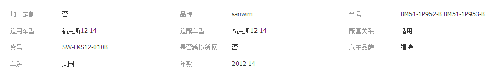 本网页所展示的有关【福克斯12款无孔雾灯框BM51-1P952-B BM51-1P953-B_ HVAC汽车_广州迅和汽车配件有限公司 】的信息/图片/参数等由全球零部件网的会员【广州迅和汽车配件有限公司 】提供,由全球零部件网会员【广州迅和汽车配件有限公司 】自行对信息/图片/参数等的真实性、准确性和合法性负责,本平台(本网站)仅提供展示服务,请谨慎交易,因交易而产生的法律关系及法律纠纷由您自行协商解决,本平台(本网站)对此不承担任何责任。您在本网页可以浏览【福克斯12款无孔雾灯框BM51-1P952-B BM51-1P953-B_ HVAC汽车_广州迅和汽车配件有限公司 】有关的信息/图片/价格等及提供【福克斯12款无孔雾灯框BM51-1P952-B BM51-1P953-B_ HVAC汽车_广州迅和汽车配件有限公司 】的商家公司简介、江南(中国)等信息。