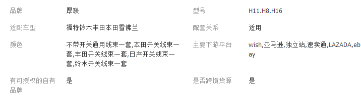 本网页所展示的有关【适用日产本田丰田福特三菱铃木雾灯通用线束组_ HVAC汽车_丹阳市同创车辆配件有限公司】的信息/图片/参数等由全球零部件网的会员【丹阳市同创车辆配件有限公司】提供,由全球零部件网会员【丹阳市同创车辆配件有限公司】自行对信息/图片/参数等的真实性、准确性和合法性负责,本平台(本网站)仅提供展示服务,请谨慎交易,因交易而产生的法律关系及法律纠纷由您自行协商解决,本平台(本网站)对此不承担任何责任。您在本网页可以浏览【适用日产本田丰田福特三菱铃木雾灯通用线束组_ HVAC汽车_丹阳市同创车辆配件有限公司】有关的信息/图片/价格等及提供【适用日产本田丰田福特三菱铃木雾灯通用线束组_ HVAC汽车_丹阳市同创车辆配件有限公司】的商家公司简介、江南(中国)等信息。