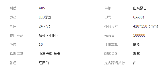 本网页所展示的有关【供应 LED优质高亮防水后尾灯 箱式半挂车 货车车厢加工挂车配件_ HVAC汽车_山东梁山金三元汽车配件制造有限公司】的信息/图片/参数等由全球零部件网的会员【山东梁山金三元汽车配件制造有限公司】提供,由全球零部件网会员【山东梁山金三元汽车配件制造有限公司】自行对信息/图片/参数等的真实性、准确性和合法性负责,本平台(本网站)仅提供展示服务,请谨慎交易,因交易而产生的法律关系及法律纠纷由您自行协商解决,本平台(本网站)对此不承担任何责任。您在本网页可以浏览【供应 LED优质高亮防水后尾灯 箱式半挂车 货车车厢加工挂车配件_ HVAC汽车_山东梁山金三元汽车配件制造有限公司】有关的信息/图片/价格等及提供【供应 LED优质高亮防水后尾灯 箱式半挂车 货车车厢加工挂车配件_ HVAC汽车_山东梁山金三元汽车配件制造有限公司】的商家公司简介、江南(中国)等信息。