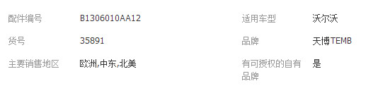 本网页所展示的有关【重卡汽车节温器 大柴沃尔沃恒温器7421705453 B1306010-A12_ HVAC汽车_曲阜天博国际贸易有限公司】的信息/图片/参数等由全球零部件网的会员【曲阜天博国际贸易有限公司】提供,由全球零部件网会员【曲阜天博国际贸易有限公司】自行对信息/图片/参数等的真实性、准确性和合法性负责,本平台(本网站)仅提供展示服务,请谨慎交易,因交易而产生的法律关系及法律纠纷由您自行协商解决,本平台(本网站)对此不承担任何责任。您在本网页可以浏览【重卡汽车节温器 大柴沃尔沃恒温器7421705453 B1306010-A12_ HVAC汽车_曲阜天博国际贸易有限公司】有关的信息/图片/价格等及提供【重卡汽车节温器 大柴沃尔沃恒温器7421705453 B1306010-A12_ HVAC汽车_曲阜天博国际贸易有限公司】的商家公司简介、江南(中国)等信息。