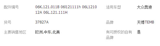 本网页所展示的有关【EA888水泵总成 适用大众奥迪汽车节温器06l121111h 06L121012A_ HVAC汽车_曲阜天博国际贸易有限公司】的信息/图片/参数等由全球零部件网的会员【曲阜天博国际贸易有限公司】提供,由全球零部件网会员【曲阜天博国际贸易有限公司】自行对信息/图片/参数等的真实性、准确性和合法性负责,本平台(本网站)仅提供展示服务,请谨慎交易,因交易而产生的法律关系及法律纠纷由您自行协商解决,本平台(本网站)对此不承担任何责任。您在本网页可以浏览【EA888水泵总成 适用大众奥迪汽车节温器06l121111h 06L121012A_ HVAC汽车_曲阜天博国际贸易有限公司】有关的信息/图片/价格等及提供【EA888水泵总成 适用大众奥迪汽车节温器06l121111h 06L121012A_ HVAC汽车_曲阜天博国际贸易有限公司】的商家公司简介、江南(中国)等信息。