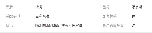 本网页所展示的有关【吉利帝豪EC7远景GC7海景SC7 改装前雨刮喷水嘴 扇形喷头水嘴永涛_ HVAC汽车_清河县永涛汽车配件有限公司】的信息/图片/参数等由全球零部件网的会员【清河县永涛汽车配件有限公司】提供,由全球零部件网会员【清河县永涛汽车配件有限公司】自行对信息/图片/参数等的真实性、准确性和合法性负责,本平台(本网站)仅提供展示服务,请谨慎交易,因交易而产生的法律关系及法律纠纷由您自行协商解决,本平台(本网站)对此不承担任何责任。您在本网页可以浏览【吉利帝豪EC7远景GC7海景SC7 改装前雨刮喷水嘴 扇形喷头水嘴永涛_ HVAC汽车_清河县永涛汽车配件有限公司】有关的信息/图片/价格等及提供【吉利帝豪EC7远景GC7海景SC7 改装前雨刮喷水嘴 扇形喷头水嘴永涛_ HVAC汽车_清河县永涛汽车配件有限公司】的商家公司简介、江南(中国)等信息。