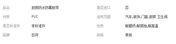 本网页所展示的有关【厨房防水防霉胶带厨卫水槽门窗缝隙贴美缝墙角线贴防潮密封条胶条_综合配件_清河县巨邦橡胶制品科技有限公司】的信息/图片/参数等由全球零部件网的会员【清河县巨邦橡胶制品科技有限公司】提供,由全球零部件网会员【清河县巨邦橡胶制品科技有限公司】自行对信息/图片/参数等的真实性、准确性和合法性负责,本平台(本网站)仅提供展示服务,请谨慎交易,因交易而产生的法律关系及法律纠纷由您自行协商解决,本平台(本网站)对此不承担任何责任。您在本网页可以浏览【厨房防水防霉胶带厨卫水槽门窗缝隙贴美缝墙角线贴防潮密封条胶条_综合配件_清河县巨邦橡胶制品科技有限公司】有关的信息/图片/价格等及提供【厨房防水防霉胶带厨卫水槽门窗缝隙贴美缝墙角线贴防潮密封条胶条_综合配件_清河县巨邦橡胶制品科技有限公司】的商家公司简介、江南(中国)等信息。