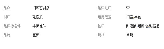 本网页所展示的有关【自粘型木门缝门底密封条隔音条门条防盗门房门保暖防风挡风防水条_综合配件_清河县巨邦橡胶制品科技有限公司】的信息/图片/参数等由全球零部件网的会员【清河县巨邦橡胶制品科技有限公司】提供,由全球零部件网会员【清河县巨邦橡胶制品科技有限公司】自行对信息/图片/参数等的真实性、准确性和合法性负责,本平台(本网站)仅提供展示服务,请谨慎交易,因交易而产生的法律关系及法律纠纷由您自行协商解决,本平台(本网站)对此不承担任何责任。您在本网页可以浏览【自粘型木门缝门底密封条隔音条门条防盗门房门保暖防风挡风防水条_综合配件_清河县巨邦橡胶制品科技有限公司】有关的信息/图片/价格等及提供【自粘型木门缝门底密封条隔音条门条防盗门房门保暖防风挡风防水条_综合配件_清河县巨邦橡胶制品科技有限公司】的商家公司简介、江南(中国)等信息。