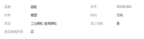 本网页所展示的有关【脚轮厂家 可定制橡塑脚轮5寸万向脚轮 一件代发静音耐磨_综合配件_文安县超胜汽车配件有限公司】的信息/图片/参数等由全球零部件网的会员【文安县超胜汽车配件有限公司】提供,由全球零部件网会员【文安县超胜汽车配件有限公司】自行对信息/图片/参数等的真实性、准确性和合法性负责,本平台(本网站)仅提供展示服务,请谨慎交易,因交易而产生的法律关系及法律纠纷由您自行协商解决,本平台(本网站)对此不承担任何责任。您在本网页可以浏览【脚轮厂家 可定制橡塑脚轮5寸万向脚轮 一件代发静音耐磨_综合配件_文安县超胜汽车配件有限公司】有关的信息/图片/价格等及提供【脚轮厂家 可定制橡塑脚轮5寸万向脚轮 一件代发静音耐磨_综合配件_文安县超胜汽车配件有限公司】的商家公司简介、江南(中国)等信息。