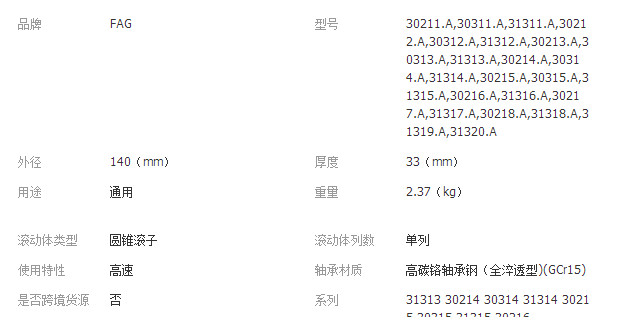 本网页所展示的有关【圆锥滚子轴承31313 30214 30314 31314 30215 30315 31315 30216_轴承_东莞市华南轴承有限公司】的信息/图片/参数等由全球零部件网的会员【东莞市华南轴承有限公司】提供,由全球零部件网会员【东莞市华南轴承有限公司】自行对信息/图片/参数等的真实性、准确性和合法性负责,本平台(本网站)仅提供展示服务,请谨慎交易,因交易而产生的法律关系及法律纠纷由您自行协商解决,本平台(本网站)对此不承担任何责任。您在本网页可以浏览【圆锥滚子轴承31313 30214 30314 31314 30215 30315 31315 30216_轴承_东莞市华南轴承有限公司】有关的信息/图片/价格等及提供【圆锥滚子轴承31313 30214 30314 31314 30215 30315 31315 30216_轴承_东莞市华南轴承有限公司】的商家公司简介、江南(中国)等信息。