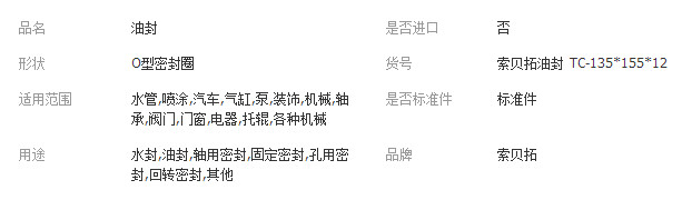 本网页所展示的有关【135*155*12/14/130*155*14/140*155*12规格齐全索贝拓骨架油封_油封_河南世博图瑞汽车配件有限公司】的信息/图片/参数等由全球零部件网的会员【河南世博图瑞汽车配件有限公司】提供,由全球零部件网会员【河南世博图瑞汽车配件有限公司】自行对信息/图片/参数等的真实性、准确性和合法性负责,本平台(本网站)仅提供展示服务,请谨慎交易,因交易而产生的法律关系及法律纠纷由您自行协商解决,本平台(本网站)对此不承担任何责任。您在本网页可以浏览【135*155*12/14/130*155*14/140*155*12规格齐全索贝拓骨架油封_油封_河南世博图瑞汽车配件有限公司】有关的信息/图片/价格等及提供【135*155*12/14/130*155*14/140*155*12规格齐全索贝拓骨架油封_油封_河南世博图瑞汽车配件有限公司】的商家公司简介、江南(中国)等信息。