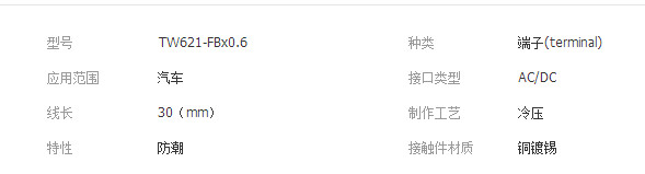 本网页所展示的有关【汽车插接件连接器冲压镀锡端子TW621-FBx0.6 价格可谈_连接器_鹤壁市天万电子有限公司】的信息/图片/参数等由全球零部件网的会员【鹤壁市天万电子有限公司】提供,由全球零部件网会员【鹤壁市天万电子有限公司】自行对信息/图片/参数等的真实性、准确性和合法性负责,本平台(本网站)仅提供展示服务,请谨慎交易,因交易而产生的法律关系及法律纠纷由您自行协商解决,本平台(本网站)对此不承担任何责任。您在本网页可以浏览【汽车插接件连接器冲压镀锡端子TW621-FBx0.6 价格可谈_连接器_鹤壁市天万电子有限公司】有关的信息/图片/价格等及提供【汽车插接件连接器冲压镀锡端子TW621-FBx0.6 价格可谈_连接器_鹤壁市天万电子有限公司】的商家公司简介、江南(中国)等信息。