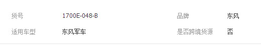 本网页所展示的有关【东风EQ2102 246 EQ2102N军车越野车变速箱副轴付轴1700E-048-B_轴承_湖北军哥汽车配件有限公司】的信息/图片/参数等由全球零部件网的会员【湖北军哥汽车配件有限公司】提供,由全球零部件网会员【湖北军哥汽车配件有限公司】自行对信息/图片/参数等的真实性、准确性和合法性负责,本平台(本网站)仅提供展示服务,请谨慎交易,因交易而产生的法律关系及法律纠纷由您自行协商解决,本平台(本网站)对此不承担任何责任。您在本网页可以浏览【东风EQ2102 246 EQ2102N军车越野车变速箱副轴付轴1700E-048-B_轴承_湖北军哥汽车配件有限公司】有关的信息/图片/价格等及提供【东风EQ2102 246 EQ2102N军车越野车变速箱副轴付轴1700E-048-B_轴承_湖北军哥汽车配件有限公司】的商家公司简介、江南(中国)等信息。