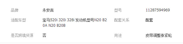 本网页所展示的有关【涨紧轮 OE:11287594969 发动机型号:N20 B20A_涨紧轮_十堰市百懋科技发展有限公司】的信息/图片/参数等由全球零部件网的会员【十堰市百懋科技发展有限公司】提供,由全球零部件网会员【十堰市百懋科技发展有限公司】自行对信息/图片/参数等的真实性、准确性和合法性负责,本平台(本网站)仅提供展示服务,请谨慎交易,因交易而产生的法律关系及法律纠纷由您自行协商解决,本平台(本网站)对此不承担任何责任。您在本网页可以浏览【涨紧轮 OE:11287594969 发动机型号:N20 B20A_涨紧轮_十堰市百懋科技发展有限公司】有关的信息/图片/价格等及提供【涨紧轮 OE:11287594969 发动机型号:N20 B20A_涨紧轮_十堰市百懋科技发展有限公司】的商家公司简介、江南(中国)等信息。