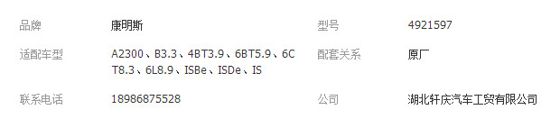 本网页所展示的有关【优势供应东风康明斯发动机位置传感器4921597_传感器_湖北轩庆汽车工贸有限公司】的信息/图片/参数等由全球零部件网的会员【湖北轩庆汽车工贸有限公司】提供,由全球零部件网会员【湖北轩庆汽车工贸有限公司】自行对信息/图片/参数等的真实性、准确性和合法性负责,本平台(本网站)仅提供展示服务,请谨慎交易,因交易而产生的法律关系及法律纠纷由您自行协商解决,本平台(本网站)对此不承担任何责任。您在本网页可以浏览【优势供应东风康明斯发动机位置传感器4921597_传感器_湖北轩庆汽车工贸有限公司】有关的信息/图片/价格等及提供【优势供应东风康明斯发动机位置传感器4921597_传感器_湖北轩庆汽车工贸有限公司】的商家公司简介、江南(中国)等信息。