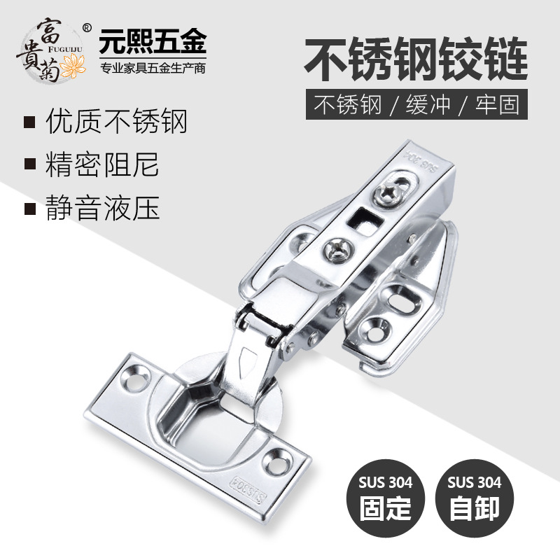 【厂家直销】1.2mm纯正304 固定/自卸 液压不锈铰链 橱柜门衣柜门