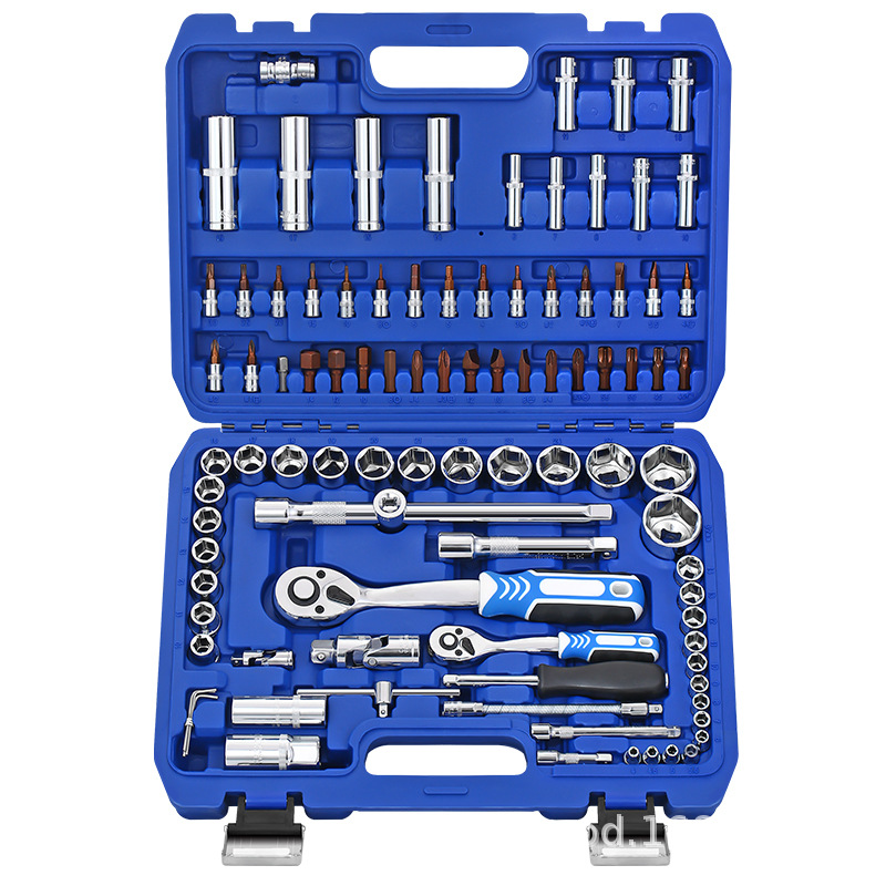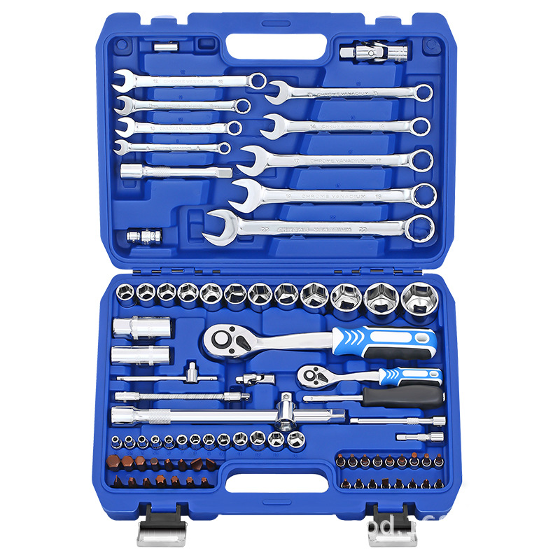 108件套厂家货源蓝盒72齿弯柄棘轮扳手套筒套装 五金修车工具