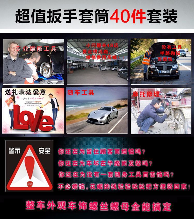【产品特点】:采用正宗碳钢,镜面处理。本产品适合车用,家用,机修,汽修等……适合汽车拆节气门,座位椅子,车门锁,挡泥板;适合汽车内部装饰。适合摩托车,自行车维修、适合拆各种形状的螺丝,螺母!