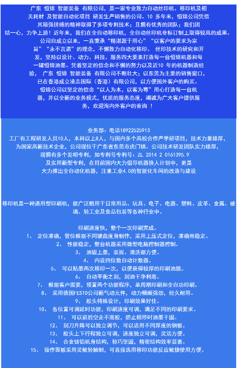 本网页所展示的有关【东自动双色油盅油墨转盘移印机全自动移印机LOGO印刷机械生产工厂_水墨印刷机_广东恒锦智能装备有限公司】的信息/图片/参数等由全球零部件网的会员【广东恒锦智能装备有限公司】提供,由全球零部件网会员【广东恒锦智能装备有限公司】自行对信息/图片/参数等的真实性、准确性和合法性负责,本平台(本网站)仅提供展示服务,请谨慎交易,因交易而产生的法律关系及法律纠纷由您自行协商解决,本平台(本网站)对此不承担任何责任。您在本网页可以浏览【东自动双色油盅油墨转盘移印机全自动移印机LOGO印刷机械生产工厂_水墨印刷机_广东恒锦智能装备有限公司】有关的信息/图片/价格等及提供【东自动双色油盅油墨转盘移印机全自动移印机LOGO印刷机械生产工厂_水墨印刷机_广东恒锦智能装备有限公司】的商家公司简介、江南(中国)等信息。