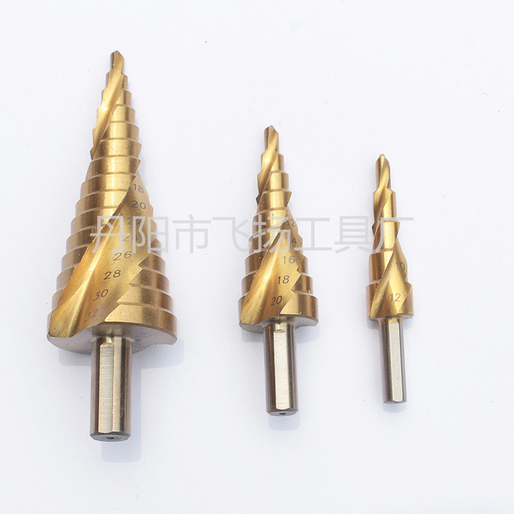 1、独特的阶梯构造,一只钻头能开多种规格尺寸孔径,一只阶梯钻抵上一盒钻头。