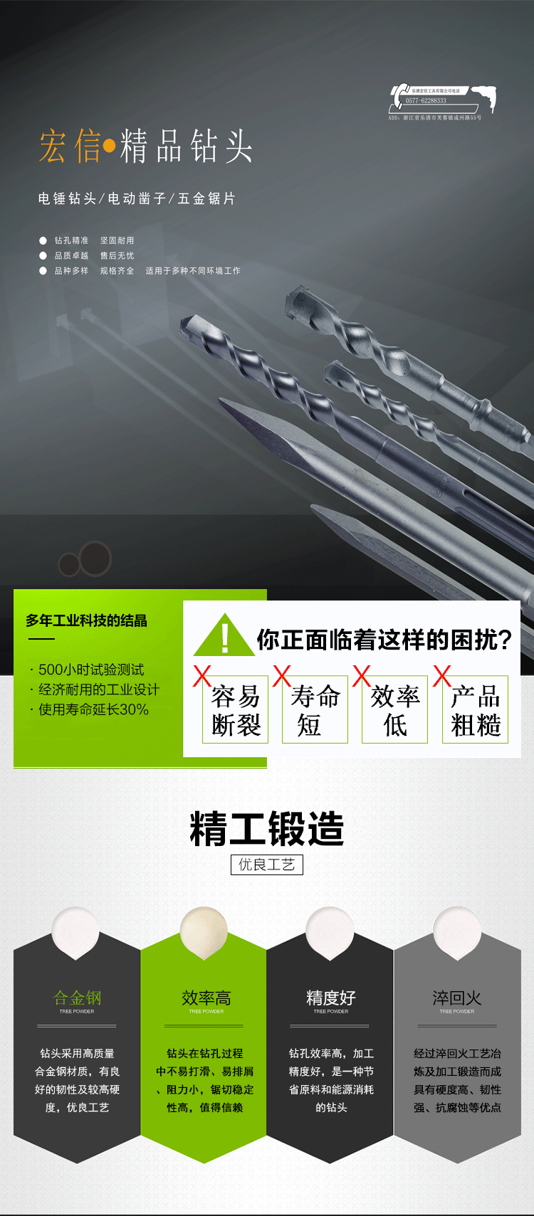 乐清市宏信工具有限公司是钻头、切削工具、五金工具、电动工具、钻孔器、锯片、气动工具制造、加工、销售、五金工具等产品专业生产加工的公司,拥有完整、科学的质量管理体系。乐清市宏信工具有限公司的诚信、实力和产品质量获得业界的认可。欢迎各界朋友莅临参观、指导和业务洽谈。
