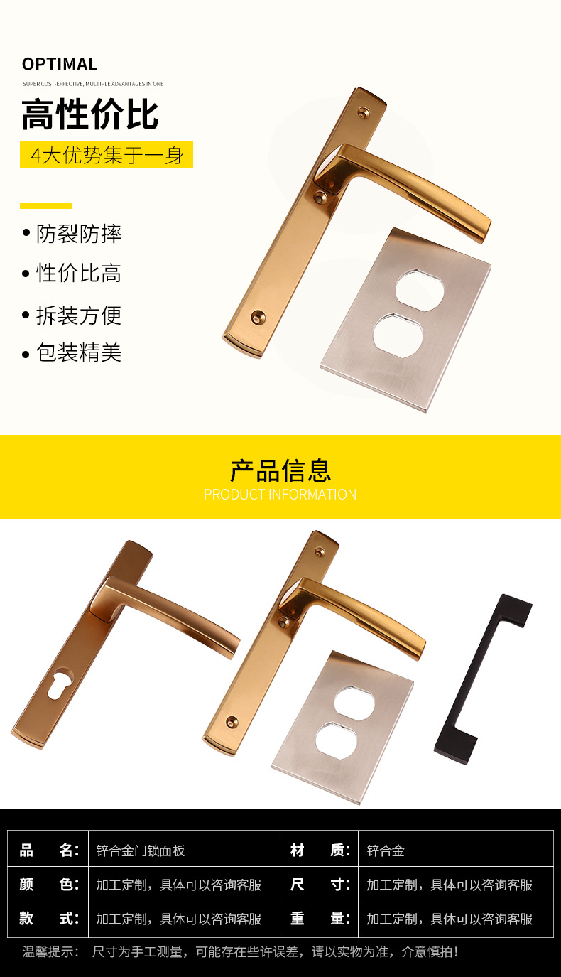 本网页所展示的有关【简约锌合金门锁面板五金门拉手室内外门柜把手配件可加工来样定制_把手_】的信息/图片/参数等由全球零部件网的会员【】提供,由全球零部件网会员【】自行对信息/图片/参数等的真实性、准确性和合法性负责,本平台(本网站)仅提供展示服务,请谨慎交易,因交易而产生的法律关系及法律纠纷由您自行协商解决,本平台(本网站)对此不承担任何责任。您在本网页可以浏览【简约锌合金门锁面板五金门拉手室内外门柜把手配件可加工来样定制_把手_】有关的信息/图片/价格等及提供【简约锌合金门锁面板五金门拉手室内外门柜把手配件可加工来样定制_把手_】的商家公司简介、江南(中国)等信息。