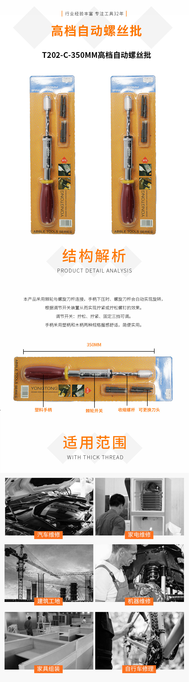 本产品采用棘轮与螺旋刀杆连接,手柄下压时,螺旋刀杆会自动实现旋转,根据调节开关装置从而实现拧紧或者拧松螺丝钉的效果,适用于各场合作业!如有不会使用或者不明白设计原理的客户可以找客服索要使用视频哦~~~
