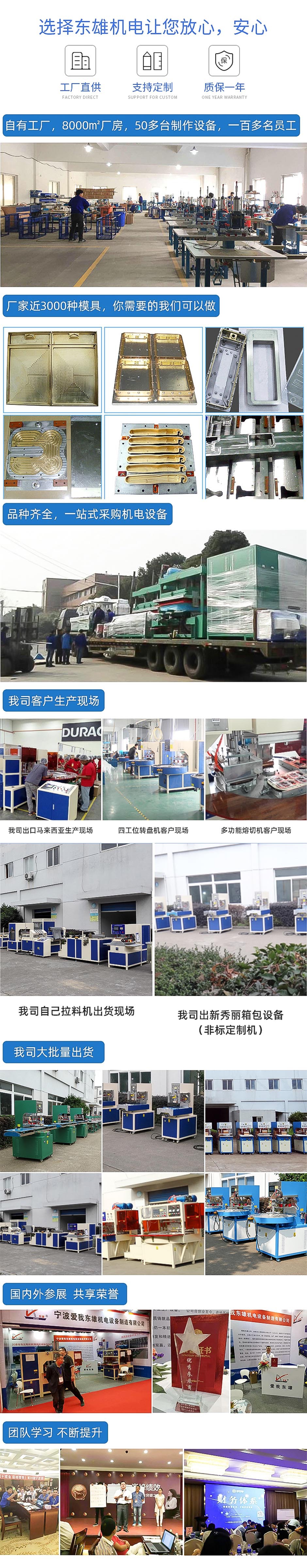 宁波爱我东雄生产浙江自动转盘熔断机是新款自动转盘熔断机生产厂家,可适用于:PET双泡壳吸塑包装、PVC双泡壳吸塑包装例如:生活用品包装的热合切断(电池、牙刷、灯泡等);还有玩具包装的热合切断,文具用品包装的热合切断(签字笔、卷笔刀、文具套件等);五金包装的热合切断(螺丝刀、剪子、压线钳等);、运动用品包装的热合切断、医疗器械包装的热合切断等等、另还适用于PVC文件袋的焊接热合与裁断,