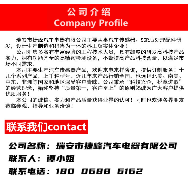 本网页所展示的有关【适用于解放J6 0041-4无触点空挡开关 M18*1.5 电子式4P 常闭解放_汽车传感器_瑞安市捷峰汽车电器有限公司】的信息/图片/参数等由全球零部件网的会员【瑞安市捷峰汽车电器有限公司】提供,由全球零部件网会员【瑞安市捷峰汽车电器有限公司】自行对信息/图片/参数等的真实性、准确性和合法性负责,本平台(本网站)仅提供展示服务,请谨慎交易,因交易而产生的法律关系及法律纠纷由您自行协商解决,本平台(本网站)对此不承担任何责任。您在本网页可以浏览【适用于解放J6 0041-4无触点空挡开关 M18*1.5 电子式4P 常闭解放_汽车传感器_瑞安市捷峰汽车电器有限公司】有关的信息/图片/价格等及提供【适用于解放J6 0041-4无触点空挡开关 M18*1.5 电子式4P 常闭解放_汽车传感器_瑞安市捷峰汽车电器有限公司】的商家公司简介、江南(中国)等信息。