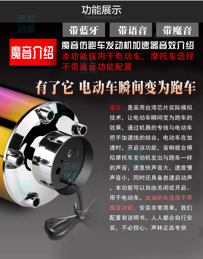 本网页所展示的有关【电动车音响 摩托车低音炮 带模拟器音箱 排气管音响 蓝牙车载音响_汽车影音娱乐_深圳市龙岗区美声林音响电子设备厂】的信息/图片/参数等由全球零部件网的会员【深圳市龙岗区美声林音响电子设备厂】提供,由全球零部件网会员【深圳市龙岗区美声林音响电子设备厂】自行对信息/图片/参数等的真实性、准确性和合法性负责,本平台(本网站)仅提供展示服务,请谨慎交易,因交易而产生的法律关系及法律纠纷由您自行协商解决,本平台(本网站)对此不承担任何责任。您在本网页可以浏览【电动车音响 摩托车低音炮 带模拟器音箱 排气管音响 蓝牙车载音响_汽车影音娱乐_深圳市龙岗区美声林音响电子设备厂】有关的信息/图片/价格等及提供【电动车音响 摩托车低音炮 带模拟器音箱 排气管音响 蓝牙车载音响_汽车影音娱乐_深圳市龙岗区美声林音响电子设备厂】的商家公司简介、江南(中国)等信息。