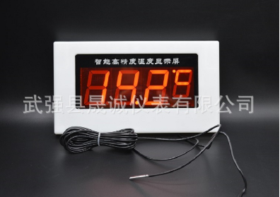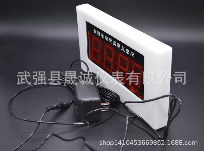 - 此款产品是我厂新研制开发的一款超大屏温度显示仪 ,温度范围-20+99℃,精度显示0.1 密封防水防潮 适用于桑拿房 浴池等高湿度环境,线长5米不锈钢探头。